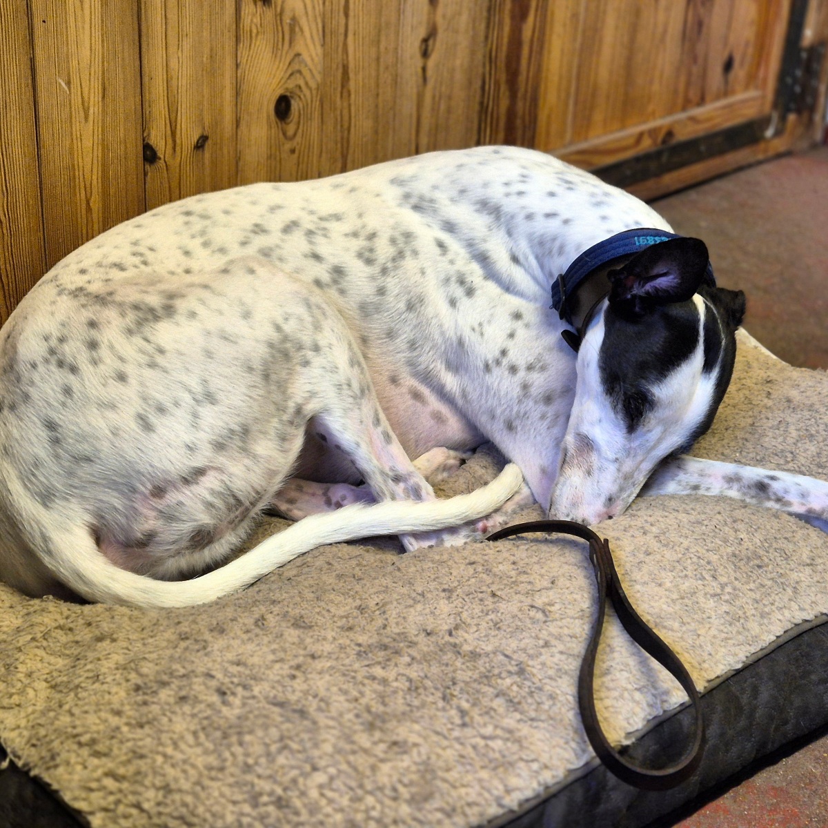 We couldn’t have asked for much better for our lovely Spy (now Jack) … a quiet home with a soft, comfy bed by the warm fire.