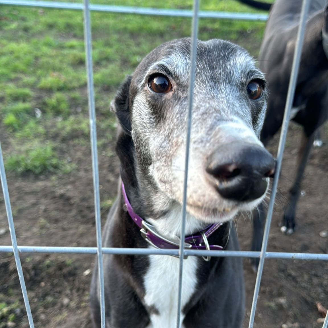 Hayley is a loving and affectionate girl who would be a special addition to a lucky family! Hayley’s a friendly girl who gets on with every greyhound she’s met and is also happy to be around older children. She turns 6 in March but certainly loves a game with her toys and enjoys her walks! Hayley has always had a greyhound companion and loves the company so could be a great addition to a family with another dog. (Hayley hasn’t met other breeds or cats)